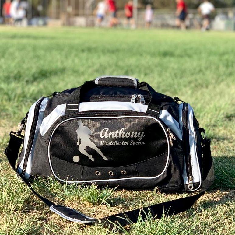 Are you looking for a great sports duffel bag for your next practice? Kishkesh offers this great deluxe sports duffel bag. Personalize the bag with name and text of your choice. The bag features a main compartment with two-way zipped closure, side shoe storage pocket, and many convenient storage and carrying options.